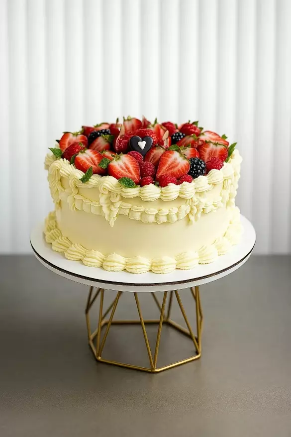 • Декор: Узоры кремом, ягоды(клубника, малина, инжир),листочки мяты, кондитерские бусины и посыпка