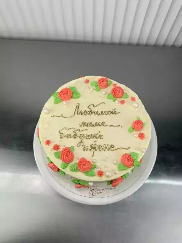 • Декор: Надпись и рисунок кремом,кондитерские бусины,золотой кондурин