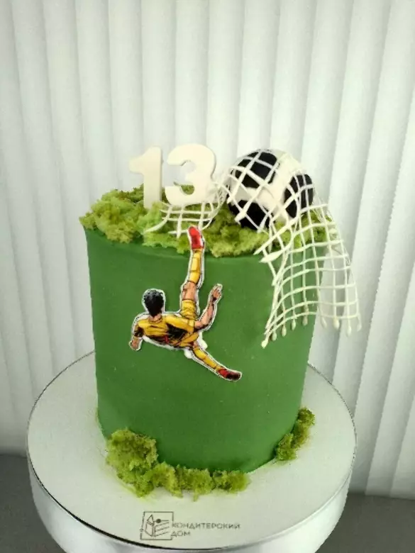 • Декор: Печать на фотобумаге, мяч и цифры из шоколадной глазури, кондитерский мох, сетка из желатина и белого шоколада