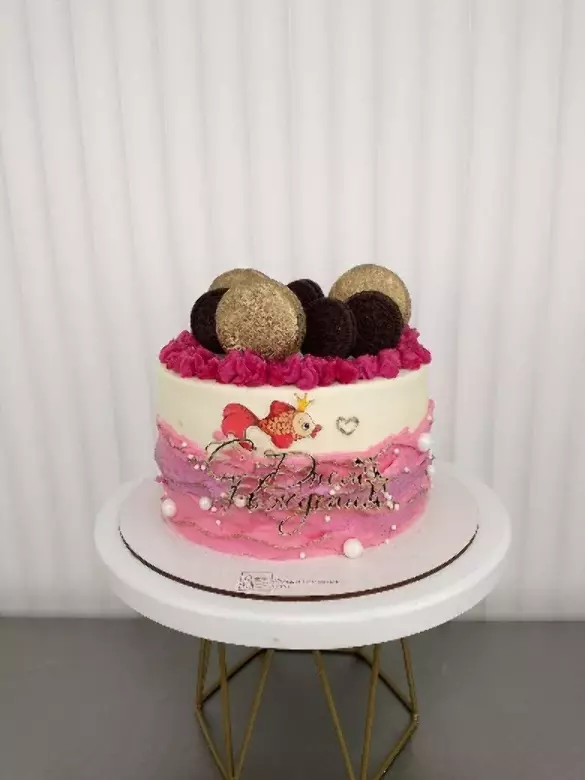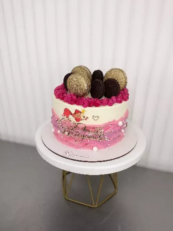 • Декор: Узор на торце торта, узоры кремом,топпер, печать на сахарной бумаге, макаронс,печеньки орео,кондитерские бусины и посыпка